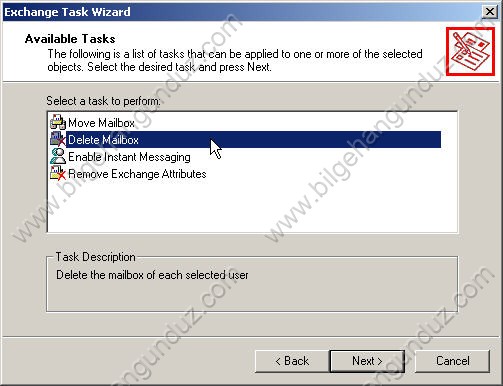 - Exchange Task Wizard açılıyor.