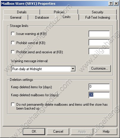 işte bu kadar basit burada önemli bir nokta var eğer biz Mailbox Store Properties ekranından Limits tabında “Keep deleted mailboxes for (days) ”